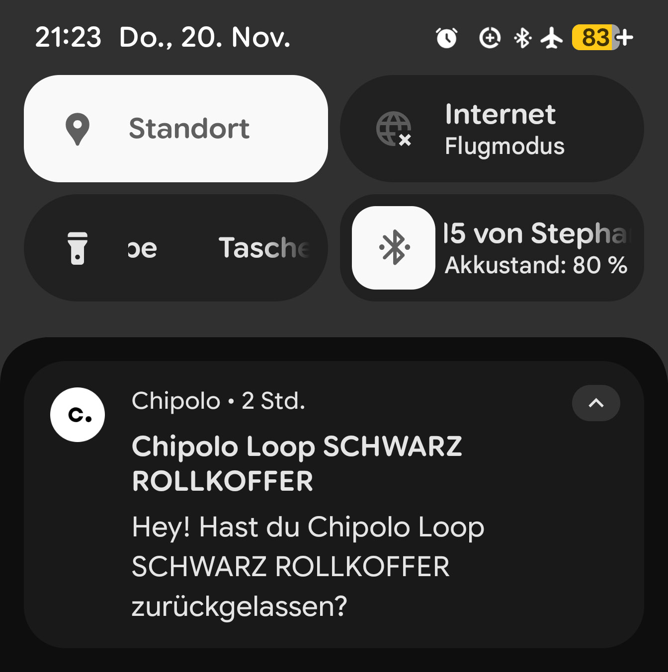 Weitere Option in Chipolo-App: Außer Reichweite Warnungen: